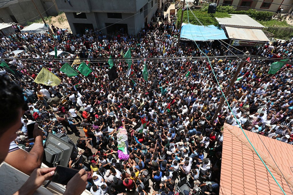 غزة (الاراضي الفلسطينية) (أ ف ب) - شيع آلاف الفلسطينيين السبت مسعفة قتلت برصاص الجيش الاسرائيلي في شرق خان يونس جنوب غزة خلال احتجاجات قرب الحدود بين القطاع واسرائيل.