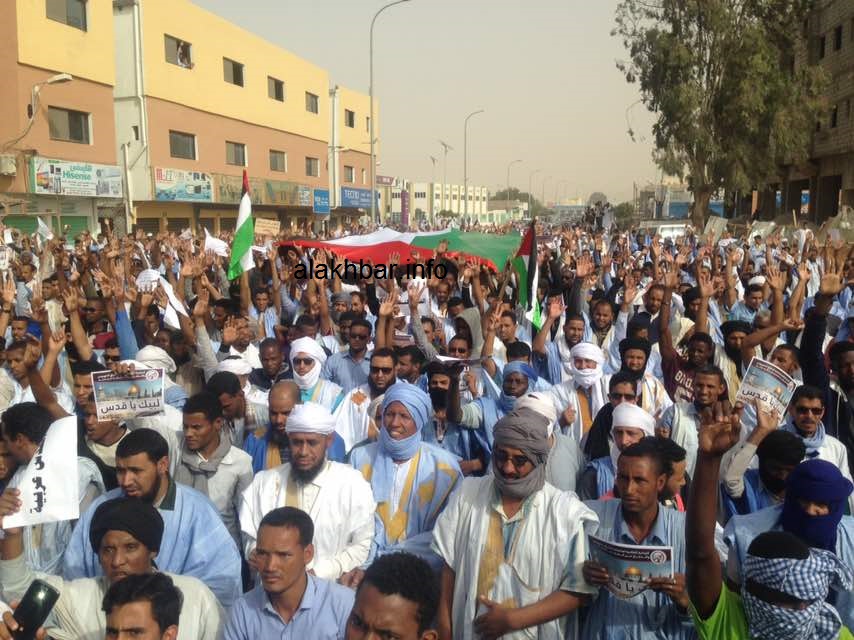 الأخبار (نواكشوط) – إنطلقت زوال اليوم الجمعة 8-12-2017 مسيرات راجلة من عدة مساجد بنواكشوط للتعبير عن رفضها لقرار الرئيس الأمريكي دونالد ترمب بتحويل سفارةبلاده من تل آبيب إلى القدس.