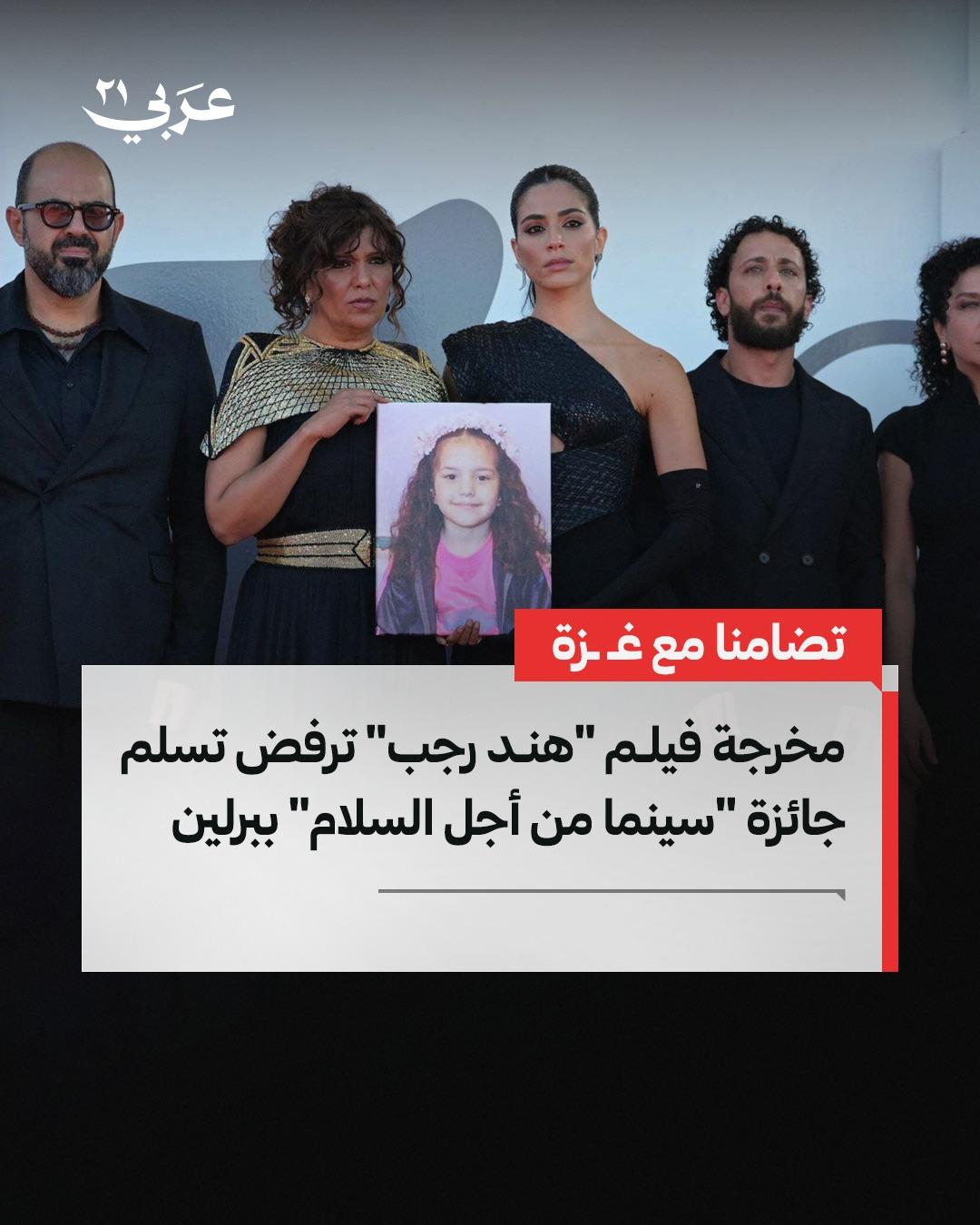 رفضت المخرجة التونسية كوثر بن هنية تسلم جائزة ألمانية منحت لفيلمها الوثائقي "صوت هند رجب" خلال حفل "سينما من أجل السلام" المقام على هامش مهرجان برلين السينمائي الدولي، بحضور شخصيات بارزة من بينها هيلاري كلينتون والممثل الأمريكي كيفن سبيسي.