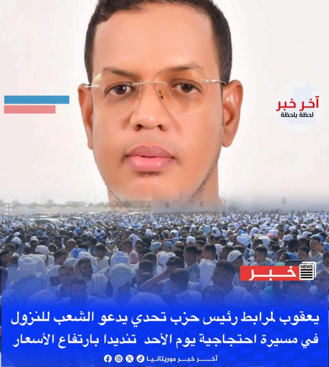 أعلن يعقوب أحمد لمرابط رئيس حزب "تحدي" (تجديد الحركة الديمقراطية) المعارض، أن حزبه قرر، النزول للشارع احتجاجا على الموجة الجديدة من ارتفاع الأسعار والضرائب.