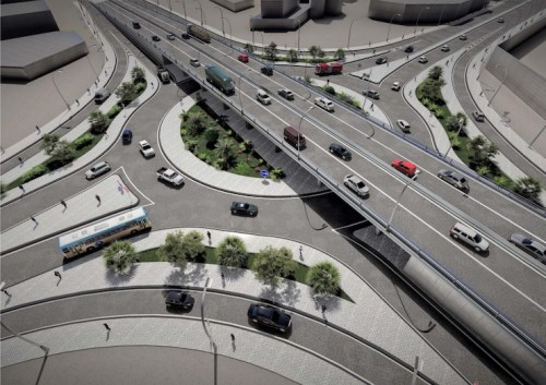 تصميم ثلاثي الأبعاد لمشروع جسر كرفور مدريد (مكتب الدراسات)